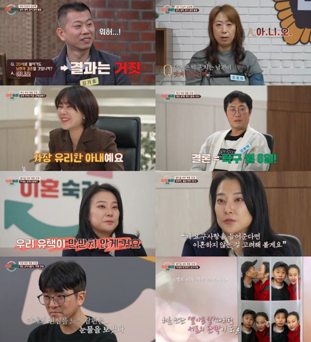 지난 20일 방송된 JTBC ‘이혼숙려캠프’에서는 다양한 쟁점으로 어려움을 겪던 8기 부부들의 최종 조정 결과가 공개됐다. 탁구에 푹 빠진 남편 때문에 가정을 혼자 돌보던 ‘탁구 부부’ 아내가 최종 조정에서 남편이 요구 조건을 들어준다면 이혼을 택하기보단 다시 잘 살아보고 싶다는 의사를 밝혔다. 이에 남편은 빠른 시일 내에 경제 활동을 시작하고 지나친 쇼핑도 끊겠다는 포부를 밝혔다. 특히 탁구 치는 횟수를 월 6회로 제한하기로 협의하며, 부부는 결혼 생활을 더 유지하기로 결정했다.