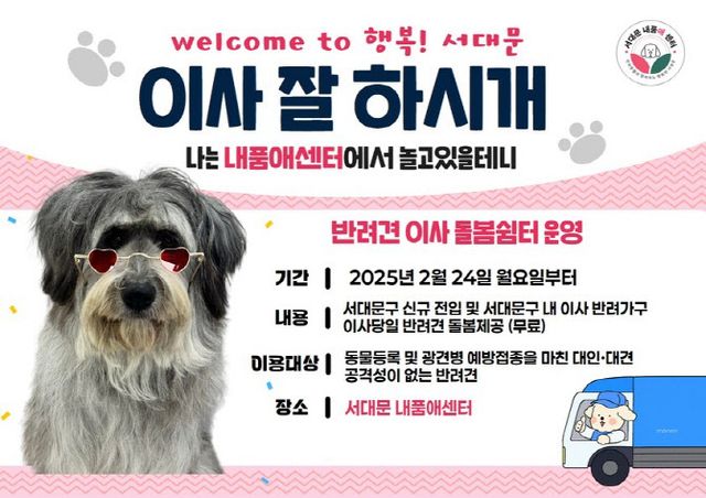 반려견 이사 돌봄 쉼터를 통해 서대문구 내에서 이사하는 주민이나 전입 가구원이면 이사 당일 무료로 이용할 수 있다.