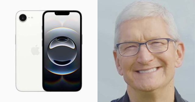 애플 아이폰 16e와 팀 쿡 애플 CEO. 쿡 CEO 사진은' Brut India' 유튜브 영상을 캡처한 것이다.