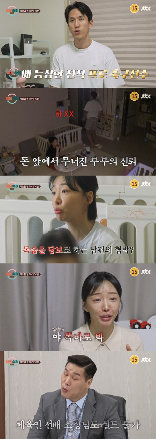 서장훈은 강지용을 “엘리트 선수 출신”이라고 소개했다. 또 이어진 관찰 카메라에서 강지용의 아내는 “너 돈 없는 게 내 탓이야? 돈이 없었잖아 이 XX새끼야”라고 화를 냈고, 이에 강지용은 “하 XX”라고 외마디 욕을 내뱉고 방으로 들어갔다.
