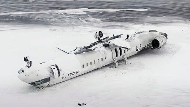 미국 미니애폴리스에서 출발한 델타항공 여객기는 지난 17일 토론토 공항에 착륙하는 과정에 활주로에서 미끄러지면서 기체 아랫부분에서 불이 났고 곧이어 완전히 뒤집혔다.