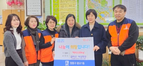 박선희 광교1동장은 “김미선 여성회장님의 나눔 실천에 깊이 감사드리며 기부하신 쌀은 지역 내 도움이 필요한 곳에 소중히 사용하겠다.”고 전했다.