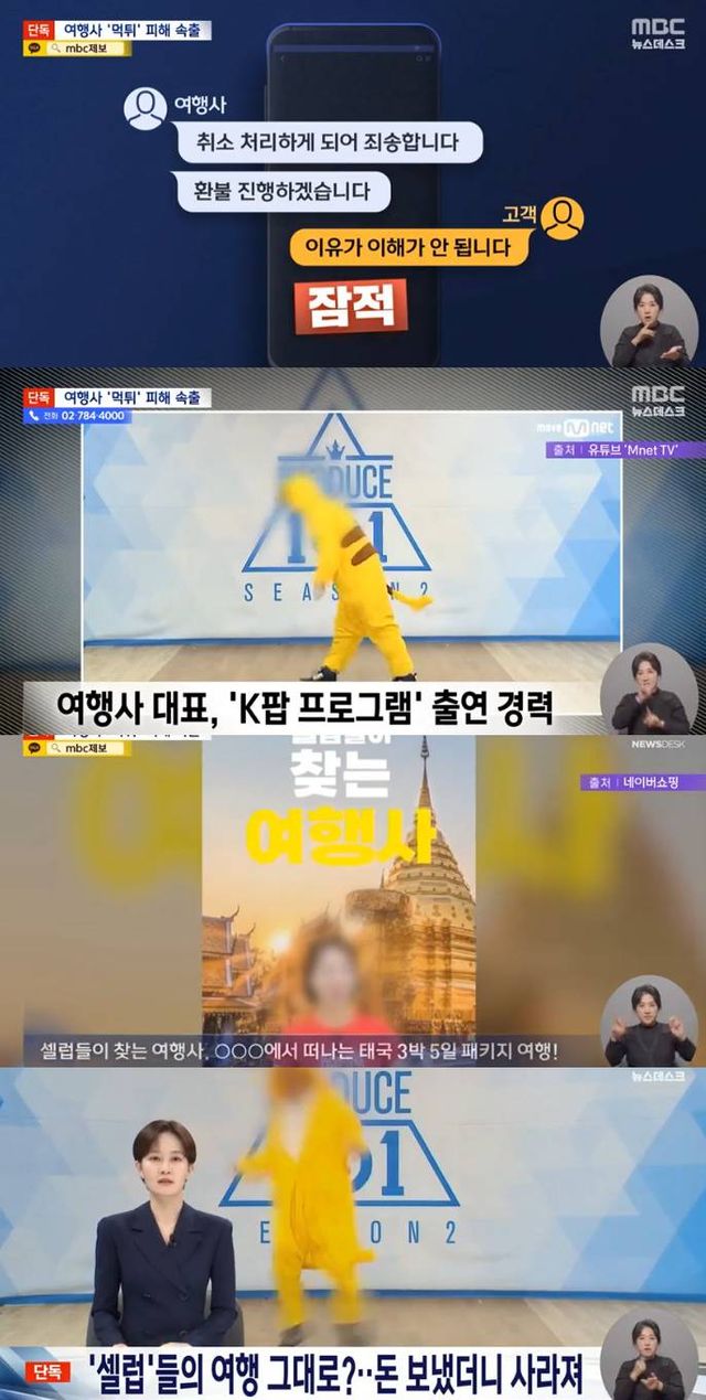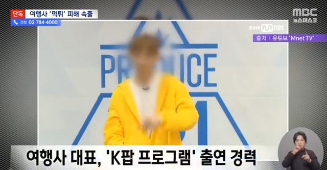 여행사 대표에 대한 자료화면에는 Mnet '프로듀스 101' 시즌2 속 인물을 모자이크 처리해 내보냈다.