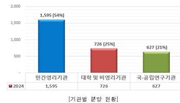 기관별로는 산업체 등 민간영리기관(54%)에 가장 많이 분양됐다. 이어서 대학 및 비영리기관(25%), 국·공립연구기관(21%) 등의 순이었다.