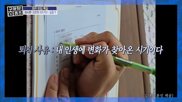 김대호가 13년 간의 MBC 아나운서 생활을 그만두고 프리랜서로 본격 전향했습니다. 프리랜서로 전향한 아나운서는 종종 있었지만 그 퇴사 과정이 생중계되고, 또 많은 시청자들의 격려를 받은 것은 김대호가 최초일 듯한데요. 지난 20일 MBC 〈구해줘 홈즈〉에서는 김대호가 퇴사를 결심하는 과정부터 사직서의 내용까지 상세하게 공개됐어요. 이날 김대호는 주우재, 양세찬과 함께 제주도의 빈집을 임장하며 이들에게 “만약 회사에서 잘린다거나 인생에 큰 충격을 받았을 때 그냥 한 두 달 정도 여유있게 제주도 살아보고 싶은 생각 없냐”라며 은연 중에 퇴사에 대한 생각을 드러냈습니다. 김대호의 사정을 모르던 두 사람은 “가까운 시일 내에 뭔가 준비하는 사람 같다, 사직서 어디 숨겼냐”라며 장난스럽게 받아쳤지만요.