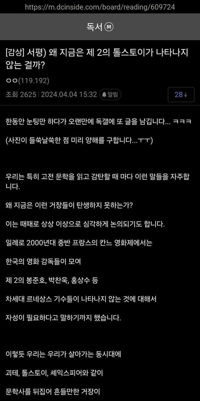 왜 제 2의 톨스토이가 나오지 않는 걸까