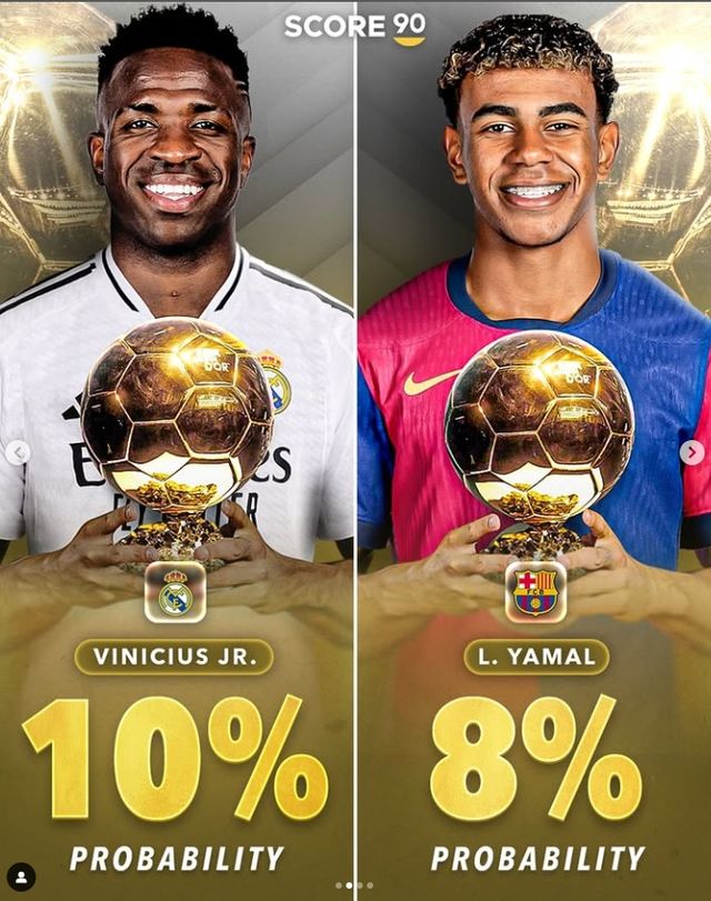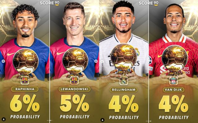 음바페의 경기력 향상은 발롱도르 수상 확률도 높였다. 스코어90에 따르면 최근 배팅업체들은 살라의 2025 발롱도르 수상 가능성을 30%로 예상했고, 음바페의 수상 가능성은 29%로 내다봤다.