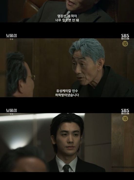 이후 염장선은 누군가와 전화통화를 한 후 "유성케미칼 인수, 허락받아냈다. 어르신 설득이 수월치 않았다. 유성케미칼을 탐내는 다른 기업도 있고"라고 말했다.