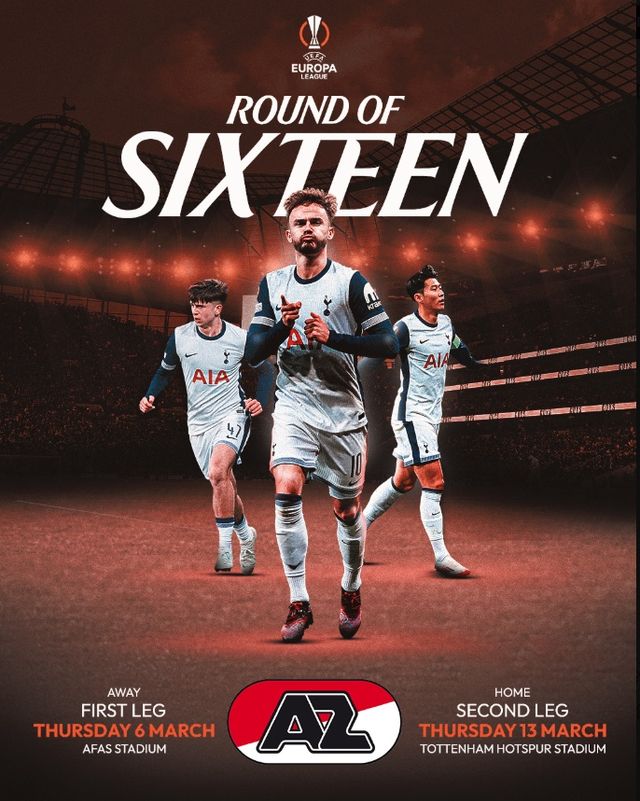 추첨 결과 토트넘은 네덜란드의 AZ알크마르를 UEFA 유로파리그 16강에서 상대하게 됐다.