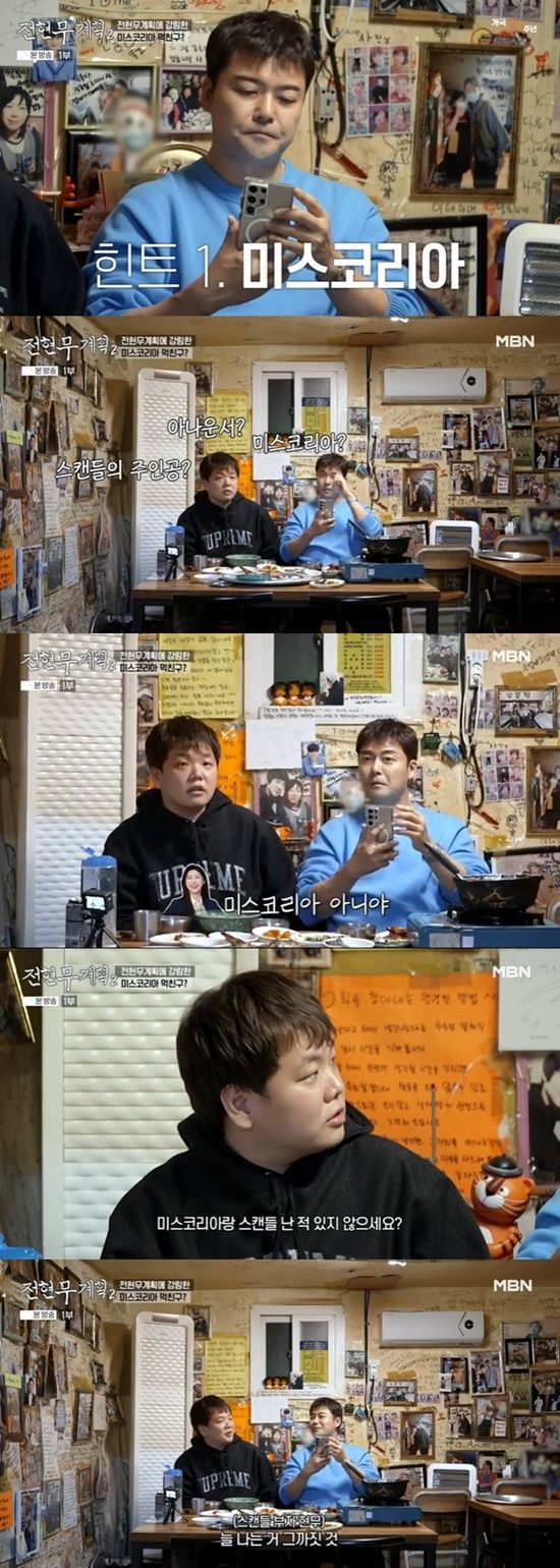 "힌트는 미스코리아다"라고 말하는 전현무에게 곽튜브는 깜짝 놀라며 "설마?"라고 생각에 잠겼다.