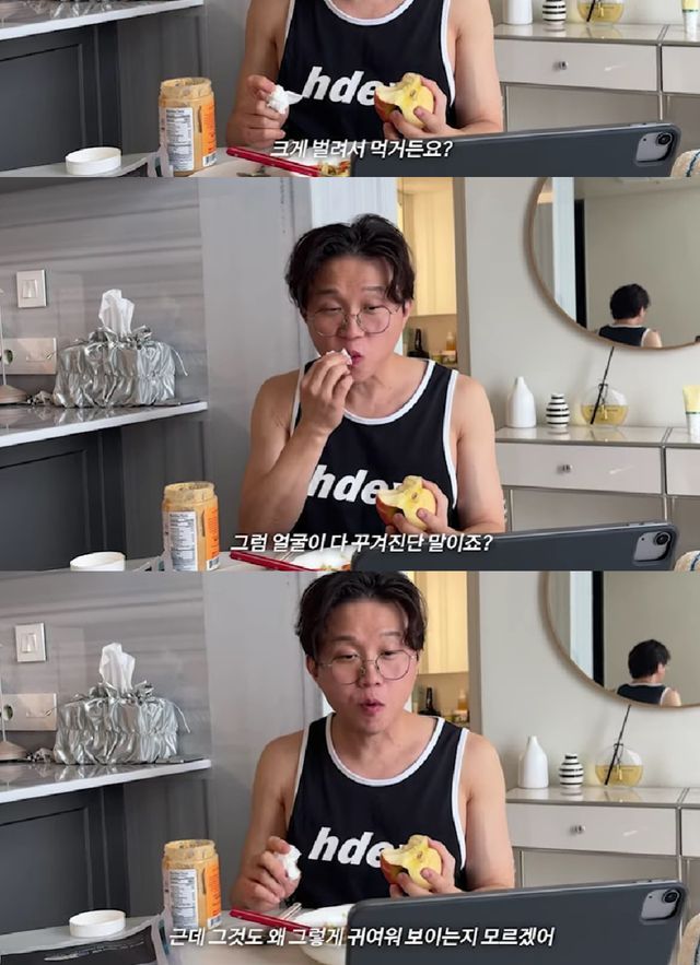 이날 박성광은 사과에 땅콩버터를 바르며 간단한 아침을 대체했고, 이어 채소와 계란을 섞어 스크램블을 만들어 위에 좋은 음식을 준비했다.