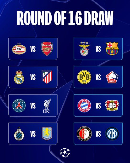 챔피언스리그 16강은 1,2차전으로 나누어 치러지며 합산스코어에서 이기는 상대가 8강전에 진출한다. 1차전은 3월 5일부터 양일간 시작되며, 2차전은 그 다음주인 3월 둘째주에 진행될 예정이다.