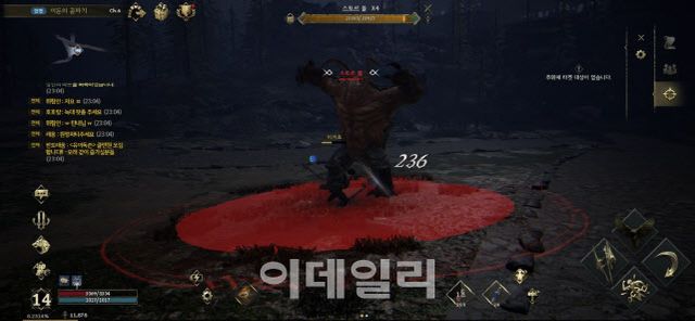 일부 대장 몬스터는 자기의 스킬 범위를 빨간색으로 표시도 해준다. 이 화면이 나타나면 수동 조작을 통해서 재빠르게 이곳을 벗어날 수 있다. 물론 이런 몬스터만 있으면 공략이 쉽겠지만 범위를 안보여주는 몬스터도 존재한다.