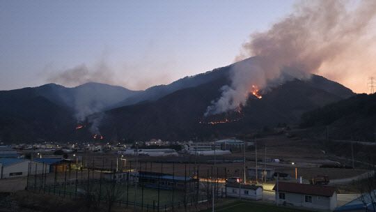 전날 불이 나자 산림 당국은 진화 차량 등 장비 30대와 인력 228명을 동원해 진화에 나섰으나, 산세가 험해 화선 위쪽으로 인력 투입에 어려움을 겪었다. 이에 야간 진화 대책으로 주변 민가 등에 방화선을 구축하고 확산을 막았다.
