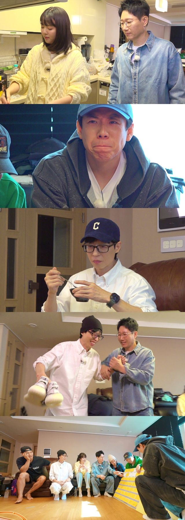 최근 진행된 녹화에서 멤버들은 이사를 앞둔 김종국 집을 방문해 대청소 후, 발굴한 물건들을 상품 삼아 미션을 진행했다. 본격적인 미션에 앞서 청소를 끝낸 멤버들은 촬영 당일, 60번째 생일을 맞이한 지석진을 위해 깜짝 생일파티를 열었다. 특히 같은 ‘충주 지씨’로 ‘부녀 케미’를 뽐내고 있는 지예은이 직접 미역국을 끓였다. 하지만 지예은은 이미 검증된 ‘요알못(요리를 알지 못하는 사람)’이기에 나머지 멤버들로 하여금 좌불안석하게 했다. 게다가 잘 먹는 멤버와 뜨뜻미지근한 반응의 멤버가 확연하게 갈려 지예은 표 ‘닭가슴살 미역국’은 과연 어떤 맛이었을지 호기심을 불러일으킨다.