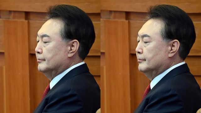 윤석열 대통령이 지난 13일 서울 종로구 헌법재판소에서 열린 탄핵심판 8차 변론에 출석해 생각에 잠겨 있다. / 뉴스1