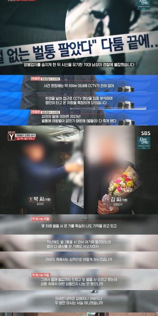 1년전 벌통 샀는데 여왕벌이 없어서 벌들이 죽었다며 판매자 살해한 구매자
