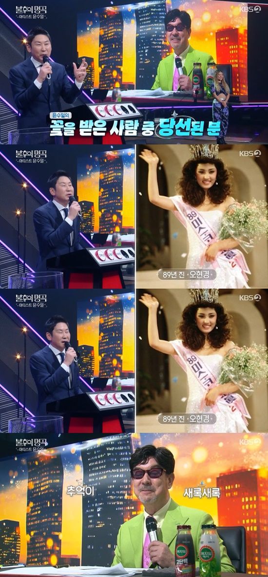 신동엽은 "꽃을 받은 분들이 공교롭게도 미스코리아가 됐다고. 그 중 고현정 오현경씨가 있었다"며 "그 당시 윤수일 씨 미모가 돋보적이었다. 사는 집 앞에도 팬들이 장사진을 이뤘다고 하더라"라고 윤수일의 인기를 언급했다.