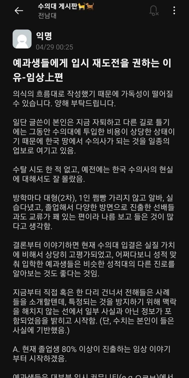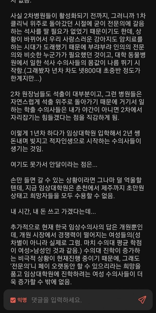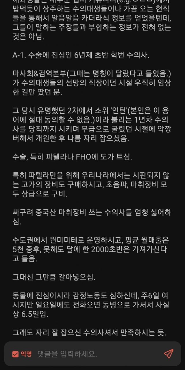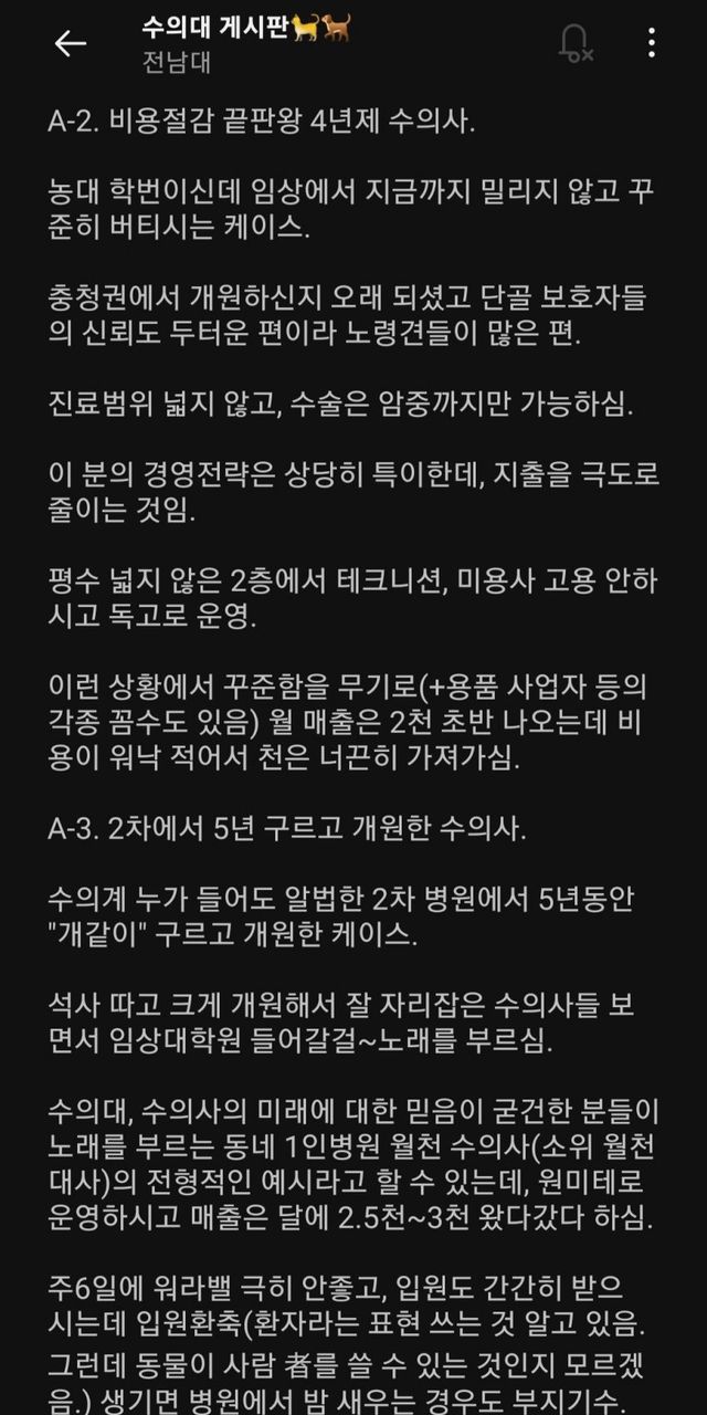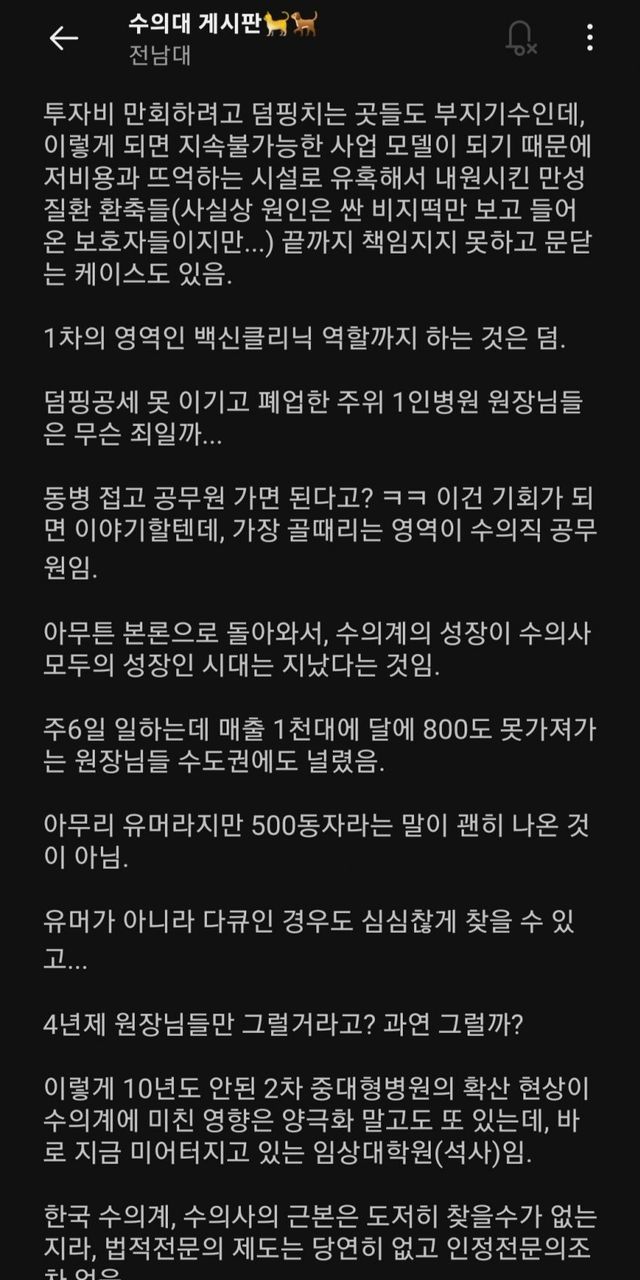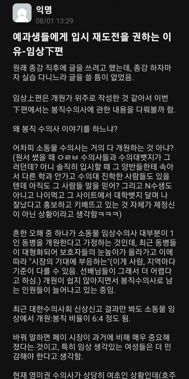 난 이번 설수좌 글 보고 작년에 이 글이 떠오르더라 그때 수의대 열심히 쉴드쳐주던 한 분 결국 올해 수탈하심 ㅋㅋㅋㅋ