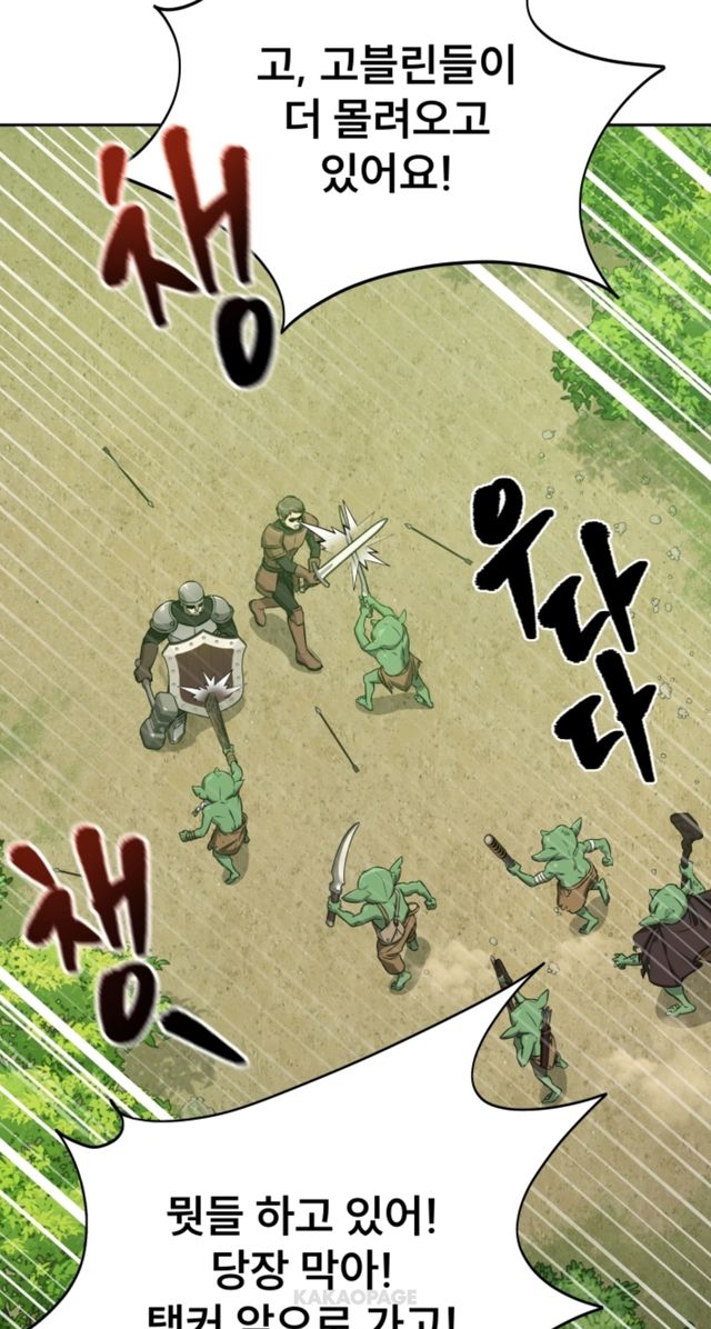 웹툰의 첫 장면은 고블린들이 몰려오는 위기 상황에서 시작됩니다.