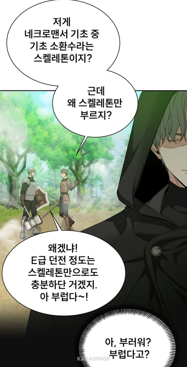 "왜겠냐! E급 던전까지는 스켈레톤만으로 충분하단 거지~ 부럽다"라고 대답하죠.