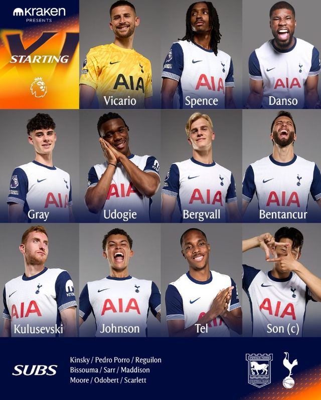 현재 토트넘은 승점 30(9승3무13패)을 기록해 프리미어리그 13위에 자리 중이다. 입스위치는 승점 17(3승8무14패)이라 강등권인 18위에 위치해 있다.