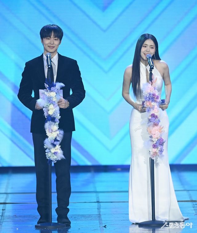 스포츠동아가 주최하고 ‘유픽(upick)’과 WSM이 주관하는 ‘유픽과 함께 하는 제1회 디 어워즈(D Awards with upick)’(주최: 스포츠동아, WSM · 주관: UPICK, WSM · 후원: G.K Link, ITTA)가 22일 서울 고려대학교 화정체육관에서 개최됐다. 디 어워즈 블랙라벨 올해의 트랜드(D*AWARDS BLACK LABEL Trend of the Year) 시상자 배우 배인혁, 김지은이 수상자를 발표하고 있다. 주현희 기자 teth1147@donga.com