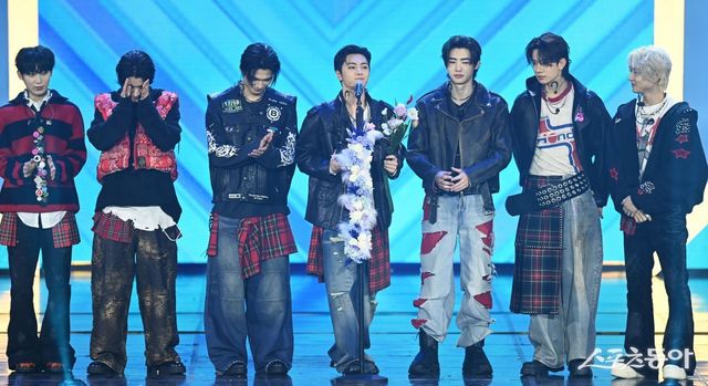 스포츠동아가 주최하고 ‘유픽(upick)’과 WSM이 주관하는 ‘유픽과 함께 하는 제1회 디 어워즈(D Awards with upick)’(주최: 스포츠동아, WSM · 주관: UPICK, WSM · 후원: G.K Link, ITTA)가 22일 서울 고려대학교 화정체육관에서 개최됐다. 디 어워즈 블랙라벨 올해의 앨범(D*AWARDS BLACK LABEL Album of the Year)에 선정된 ENHYPEN(엔하이픈)이 수상 소감을 밝히고 있다. 주현희 기자 teth1147@donga.com