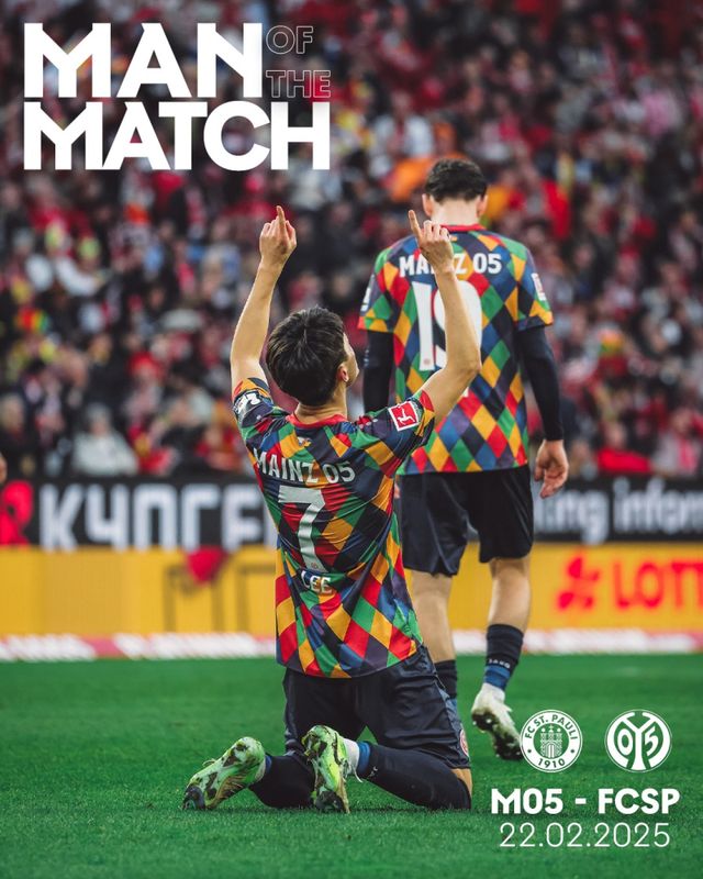 마인츠는 23일(한국시간) 독일 마인츠의 MEWA 아레나에서 열린 2024~25 분데스리가 23라운드 홈 경기서 장크트파울리를 2-0으로 제압했다. 마인츠는 리그 11승(5무7패)째를 올리며 리그 5위(승점 38)로 뛰어올랐다.