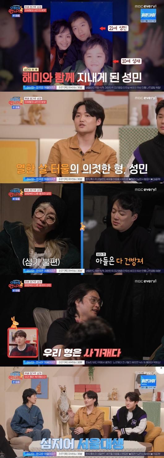 [메디먼트뉴스 김민기 기자] 22일 방송된 MBC에브리원·MBN 예능 프로그램 '다 컸는데 안 나가요'에서는 배우 박해미의 아들 황성재가 이부 형제인 임성민에게 애틋한 마음을 전하는 모습이 그려졌다.