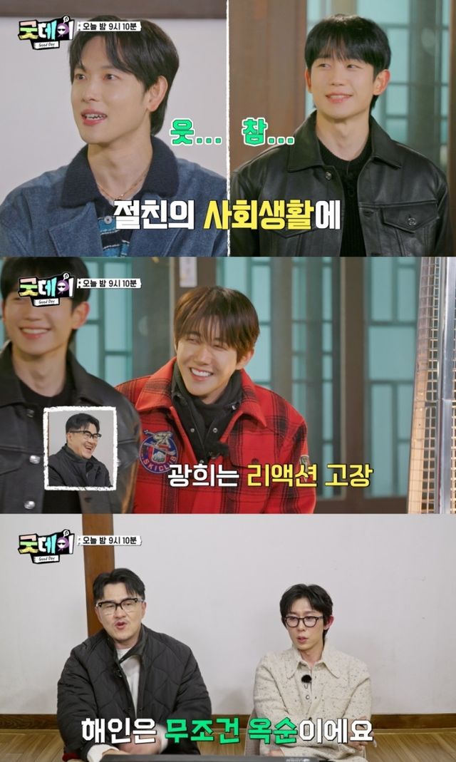 임시완은 순수한 외모와 둥글둥글한 성격으로 ‘영자’라는 이름을, 이수혁은 눈에 띄는 피지컬로 ‘영호’라는 이름을 받았다. 데프콘은 정해인에 대해 ‘옥순’이라고 강조하며 “그냥 예쁘다. 내 눈에 예쁘다. 반했다”라고 말해 웃음을 자아냈다. 한편 황광희에게는 “짝사랑에 가슴앓이하는 광수”라고 덧붙였다.