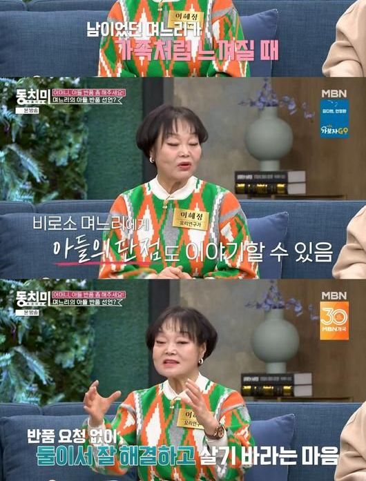 22일 방송된 MBN '속풀이쇼 동치미'에서는 '어머니, 아들 반품 좀 해주세요!'를 주제로 이혜정을 비롯한 다양한 출연진들이 솔직한 이야기를 나눴다.