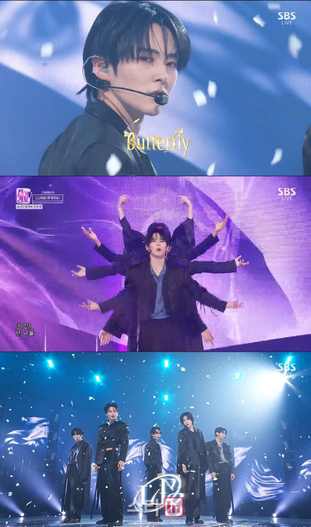 루네이트는 23일 방송한 SBS ‘인기가요’에 출연해 새 싱글 앨범 ‘나비’와 동명인 타이틀곡 무대를 펼쳤다.