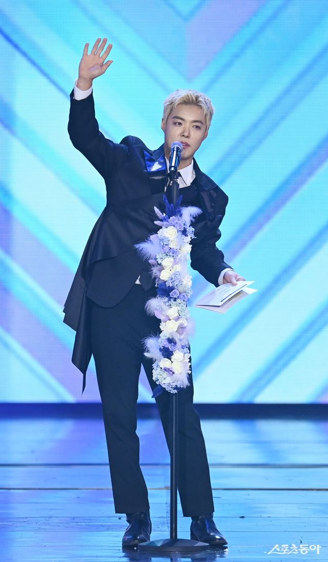 스포츠동아가 주최하고 ‘유픽(upick)’과 WSM이 주관하는 ‘유픽과 함께 하는 제1회 디 어워즈(D Awards with upick)’(주최: 스포츠동아, WSM · 주관: UPICK, WSM · 후원: G.K Link, ITTA)가 22일 서울 고려대학교 화정체육관에서 개최됐다. 디 어워즈 딜라이트 블루라벨(D*AWARDS DELIGHTS BLUE LABEL) 시상자 강남이 팬들에게 인사하고 있다. 주현희 기자 teth1147@donga.com