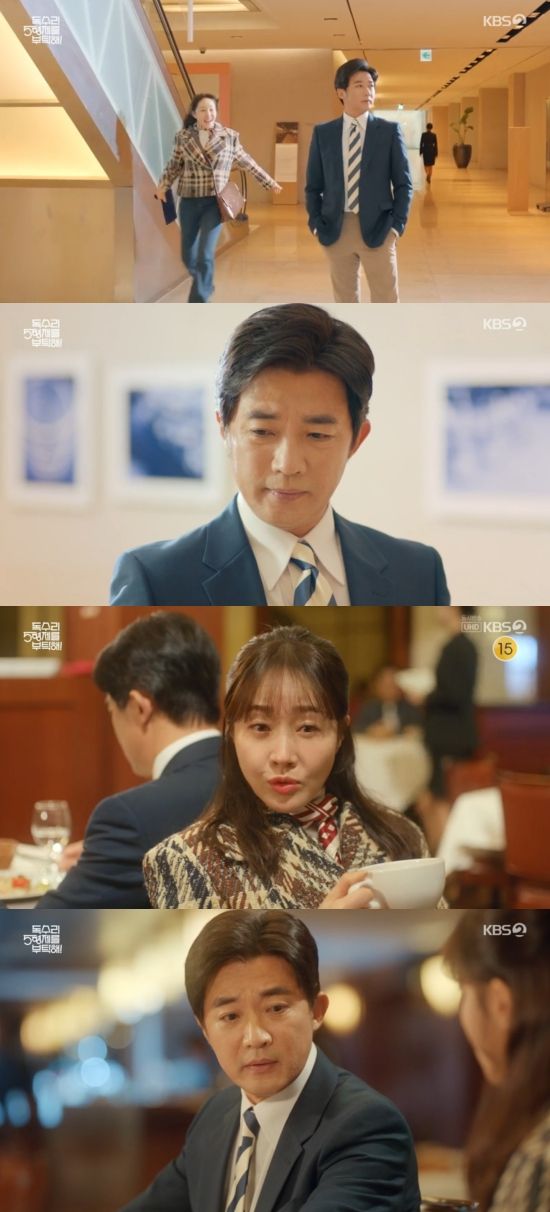 23일 방송된 KBS 2TV 주말드라마 '독수리 5형제를 부탁해!'(이하 '독수리 5형제') 8회에서는 한동석(안재욱 분)이 마광숙(엄지원)에게 거리를 두는 모습이 그려졌다.