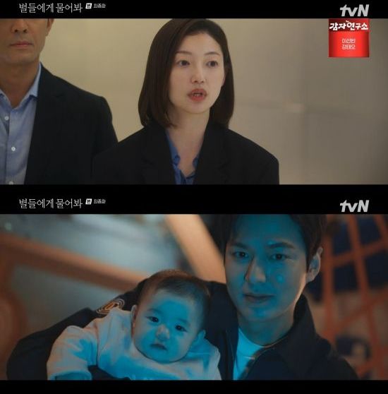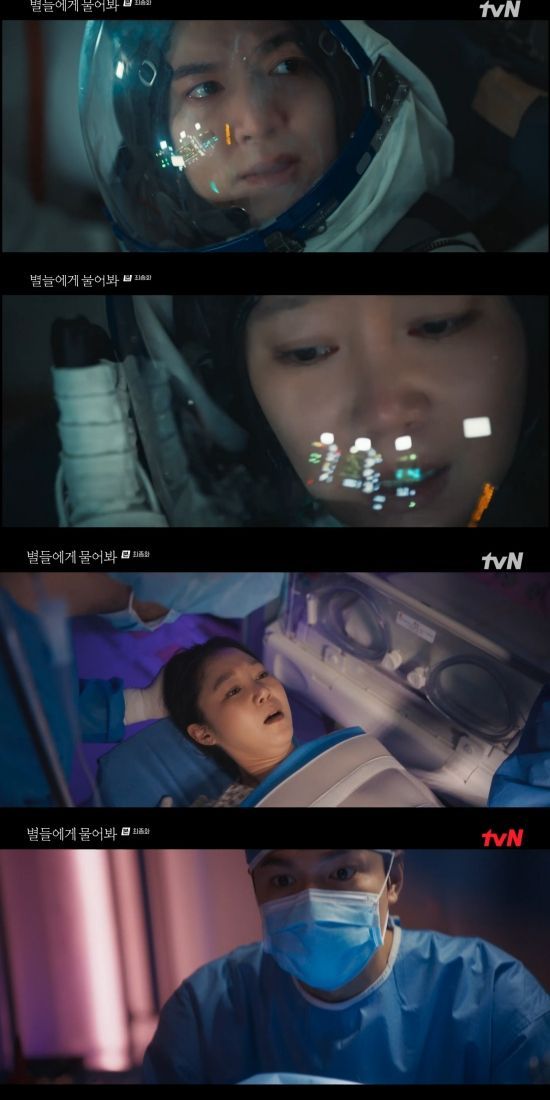 23일 방송된 tvN 토일드라마 '별들에게 물어봐' 16회(최종회)에서는 이브 킴(공효진 분)이 공룡(이민호)와 함께 우주 정거장에서 아이를 낳은 모습이 그려졌다.