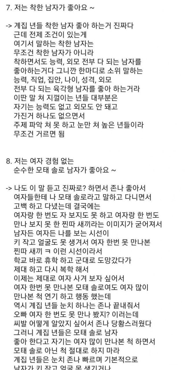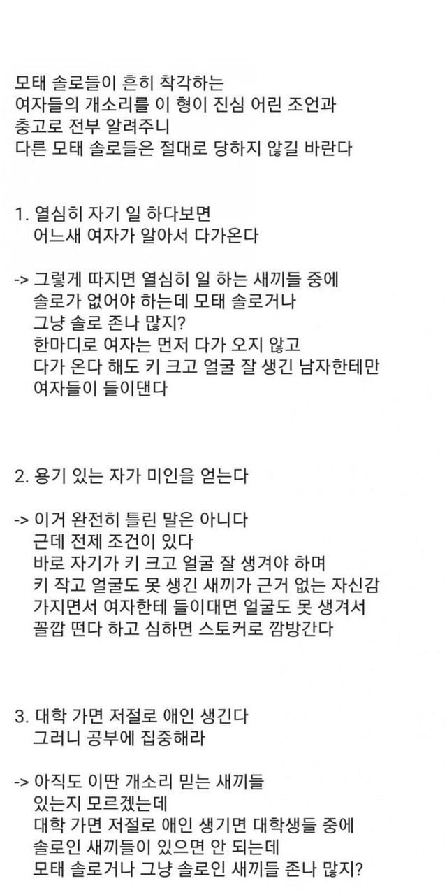 위 사진처럼 여자들이 좋아할 외모를 가진 모쏠들은 제외인듯