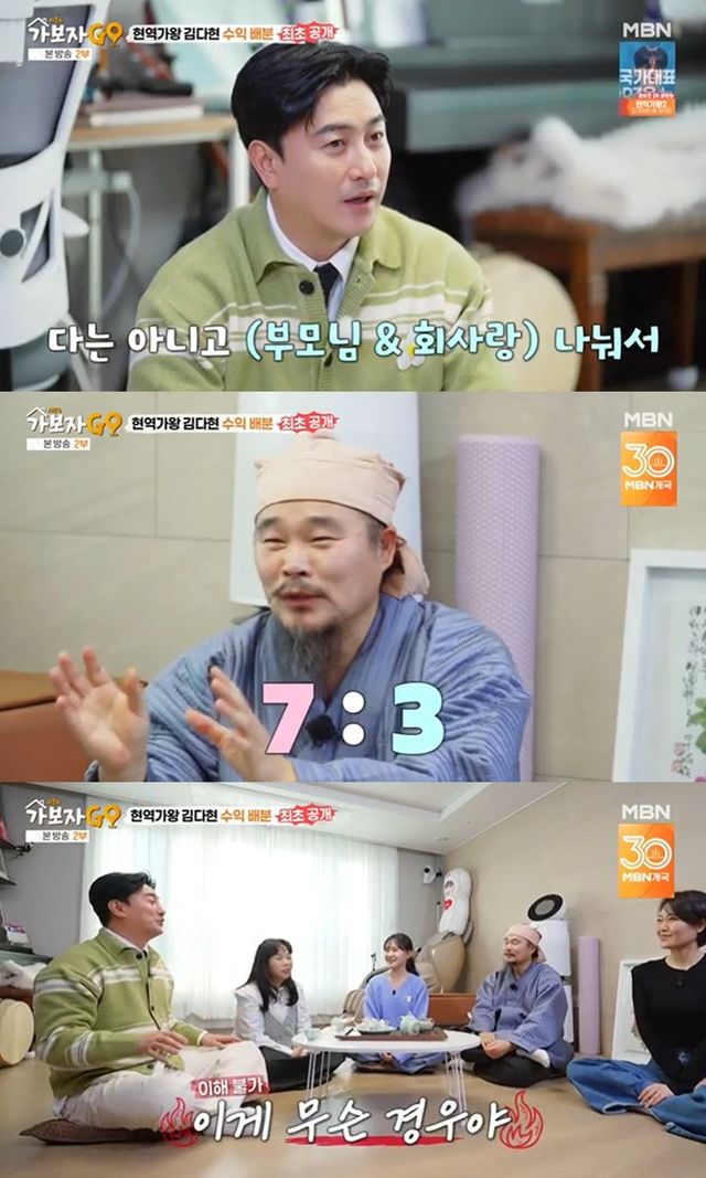 이를 들은 안정환이 "지금 버는 수익 다?"라고 물었고, 김다현은 "다는 아니고 나눠서"라고 답했다. 공연을 하면 공연비를 부모님과 나눈다는 설명이다. 이에 안정환은 "이게 무슨 경우냐"며 황당해했고, 김봉곤은 수익 배분 비율이 "7대3"이라며 해명했다.