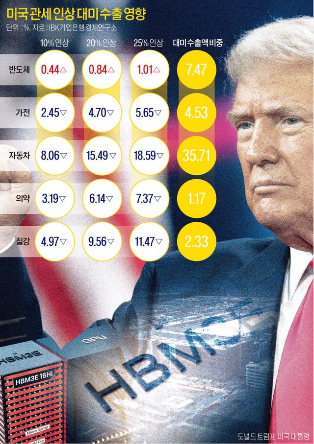 IBK기업은행 경제연구소는 미국이 25%의 관세를 책정해도 반도체의 연간 총 수출액은 오히려 1.01% 늘어날 것으로 내다봤다.
