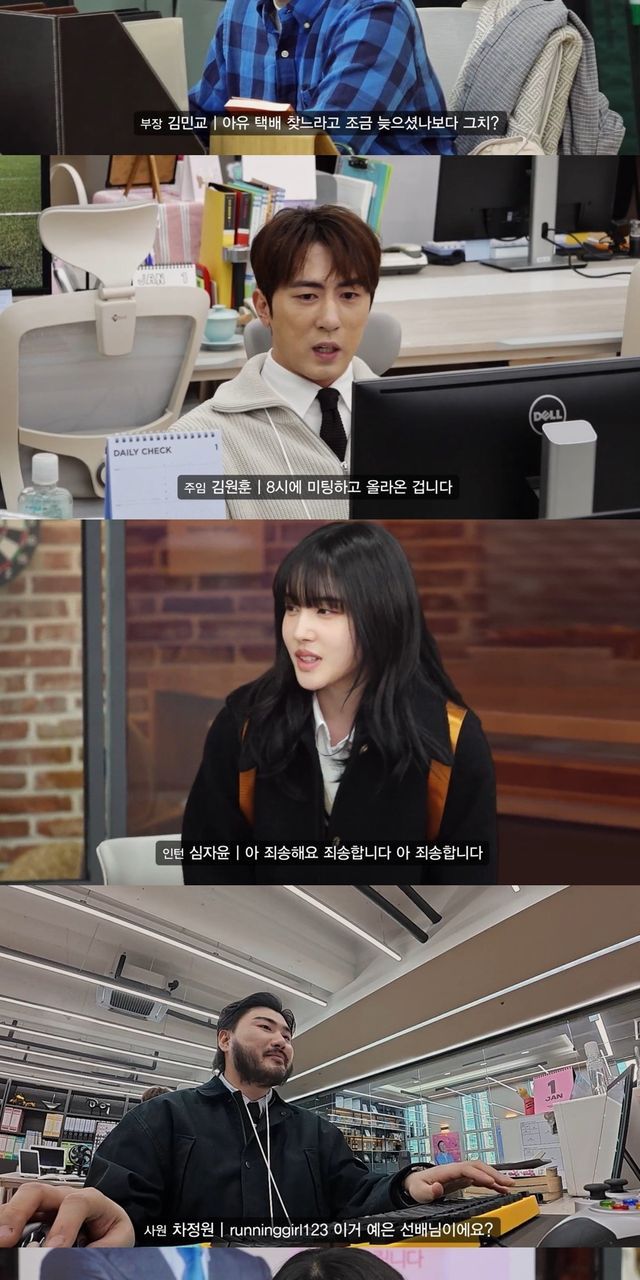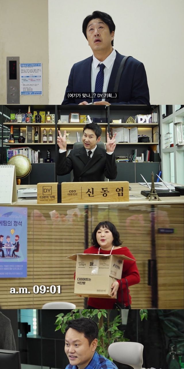 공개된 1화는 신동엽 대표가 이끄는 마케팅 회사 DY기획에 입사하게 된 84년생 반전 비주얼 신입 대리 현봉식의 첫 출근길로 시작됐다. 대표 신동엽, 부장 김민교, 과장 이수지, 대리 현봉식, 주임 김원훈, 사원 지예은과 차정원(카더가든) 그리고 인턴 심자윤(STAYC 윤)은 출근길부터 ‘어디서 본 적 있는’ 현실 직장인 빌런들과 소름 돋는 싱크로율을 자랑하며 웃음 사냥에 제대로 성공했다.