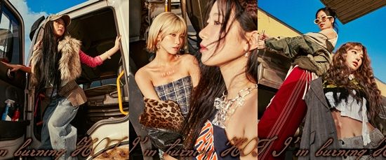 단체 사진 속 멤버들은 작열하는 태양 아래 그 어느 때보다 강렬한 비주얼을 자랑한다. 이들은 햇빛에 붉게 탄 듯한 메이크업을 완벽하게 소화해 색다른 느낌을 선사한다. 또한 이날 선보인 두 장의 단체 사진에는 지난 17일 공개된 로고모션에 삽입된 'I'm burning HOT"이라는 문구가 재등장해 눈길을 끌었다.