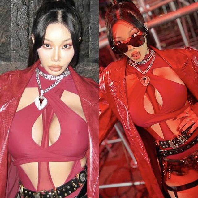 사진 속 제시는 몸매 라인이 드러나는 레드 의상을 입고 있다. 특히 포니테일 헤어스타일로 힙하면서도, 섹시함을 더했다.