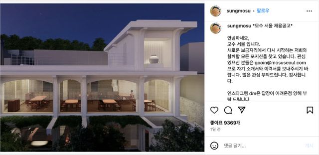 네티즌들은 “기미상궁 희망합니다”, “손님으로 지원합니다” “음식물쓰레기 처리기로 지원합니다” 등 재치 있는 댓글을 통해 모수 서울에 대한 기대감을 드러냈다.