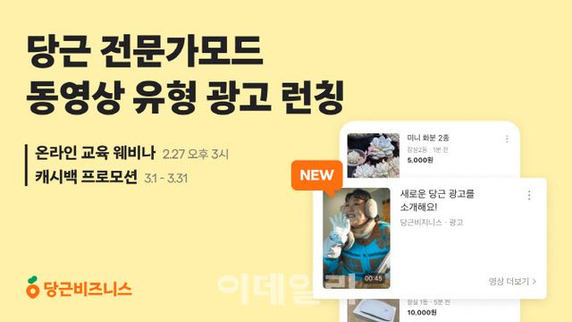 박상훈 당근 광고실장은 “브랜딩 목표부터 서비스 신청, 구매 등 전환 목표까지 다양한 캠페인을 당근 전문가모드 동영상 유형 광고를 통해 효과적으로 운영할 수 있도록 설계했다”며 “이번 웨비나와 캐시백 프로모션을 시작으로 광고주들이 더욱 쉽게 동영상 소재를 활용해 최적의 성과를 낼 수 있도록 적극 지원하겠다”고 전했다.