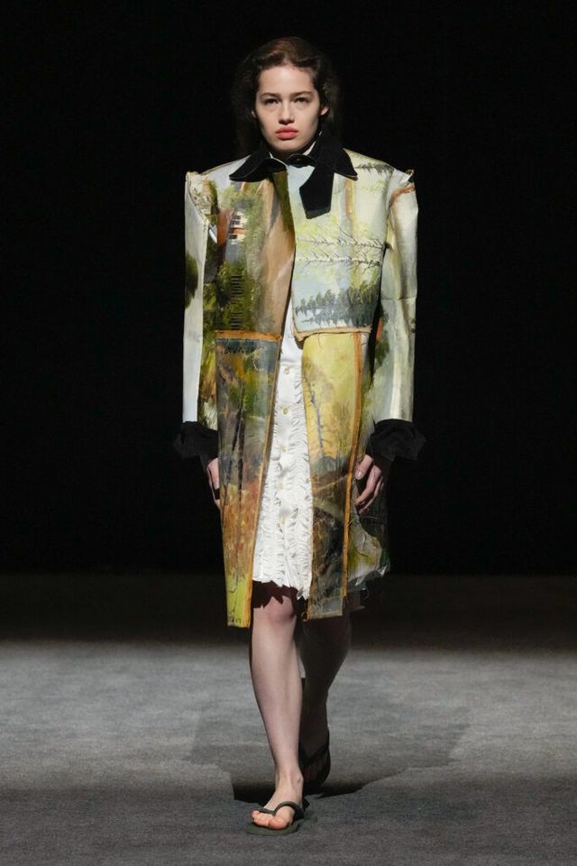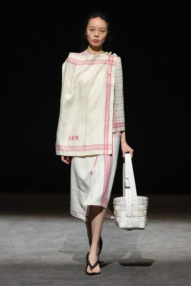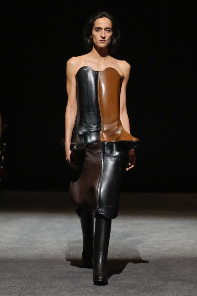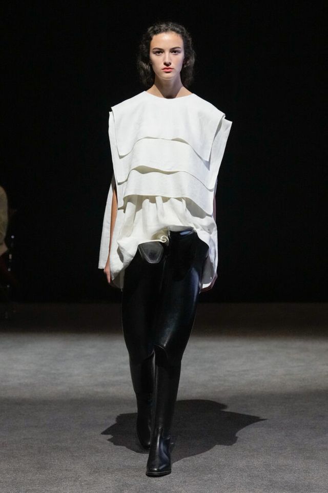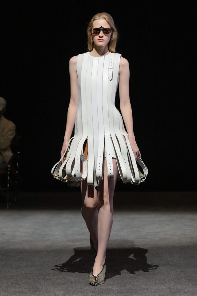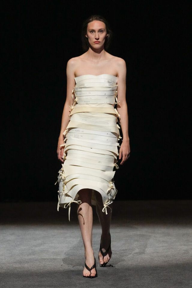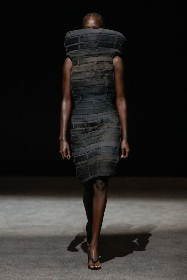 NOTE 빈티지 아이템과 데드 스톡을 업사이클링하는 진보적 방식으로 2024년 LVMH 우승을 거머쥐며 패션계의 슈퍼 루키로 떠오른 엘렌 호다코바 라르손. 테일러링 팬츠의 허리띠 부분을 겹겹이 쌓아 완성한 하이숄더 드레스, 가죽 벨트를 촘촘히 연결한 원피스 등 자세히 보면 이 옷을 구성한 본래의 재료가 무엇인지 알 수 있을 만큼 과감한 소재 선택이 특징이다. 호다코바의 디자인은 일상의 아이템을 새로운 시선으로 바라보고 아방가르드하게 변주하는 데 그 핵심이 있다.