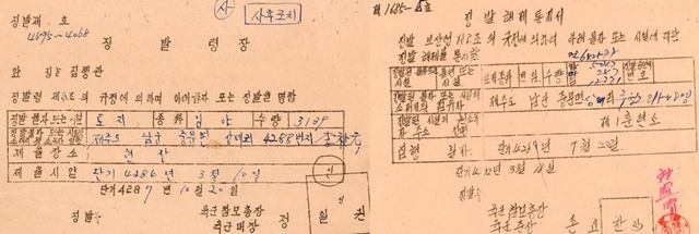 한국전쟁기 토지 징발령장(왼쪽)과 토지 징발 해제 통지서. 제주도 제공