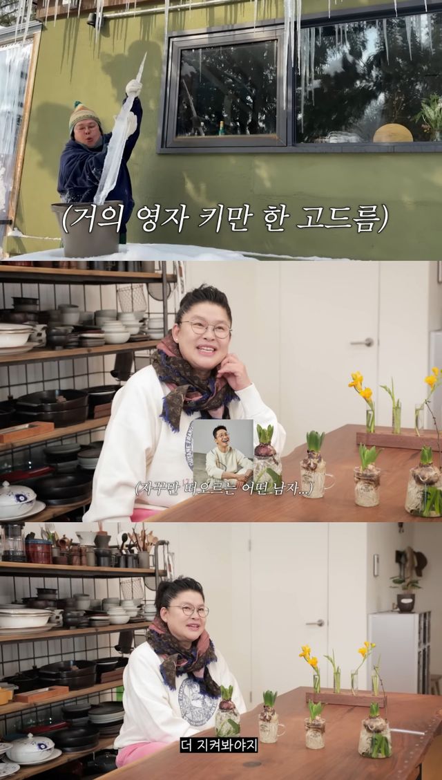 영상 속 이영자는 날이 풀리자 지붕에 빼곡하게 생긴 고드름을 제거했다. 자신의 키 만큼 큰 고드름을 처음에는 조심스럽게 제거하던 이영자는 이내 막대기로 거침없고 빠르게 고드름과 사투를 끝냈다.