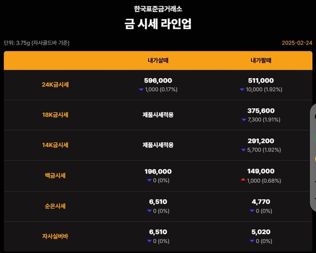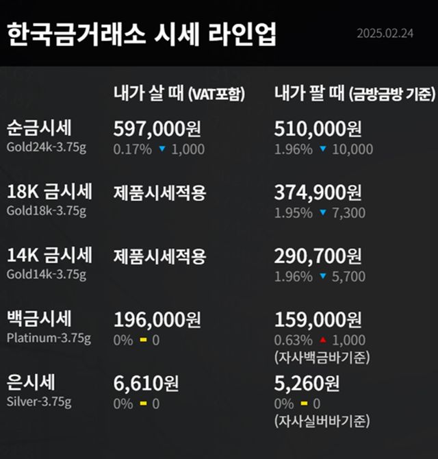 순금(24K) : 매입가 59만 7000원 / 매도가 51만 원