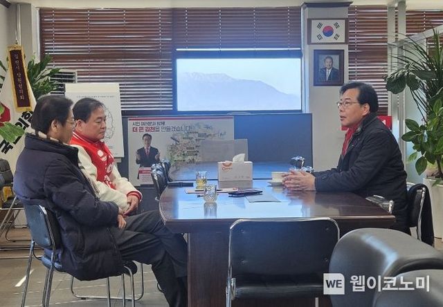 (웹이코노미) 송언석 김천시 당협위원회 위원장(3선 국회의원, 국회 기획재정위원장)이 2월 24일, 김천사무실에서 김천시장 재선거에 출마한 국민의힘 경선 후보인 김응규 후보와 배낙호 후보를 만나, 공정한 경선과 선의의 경쟁을 위한 간담회를 가졌다.