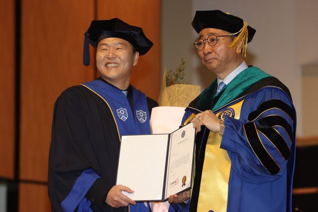 연세대는 24일 오전 서울 서대문구 연세대 신촌캠퍼스 대강당에서 열린 학위수여식에서 싸이에게 명예졸업증서를 수여했다.
